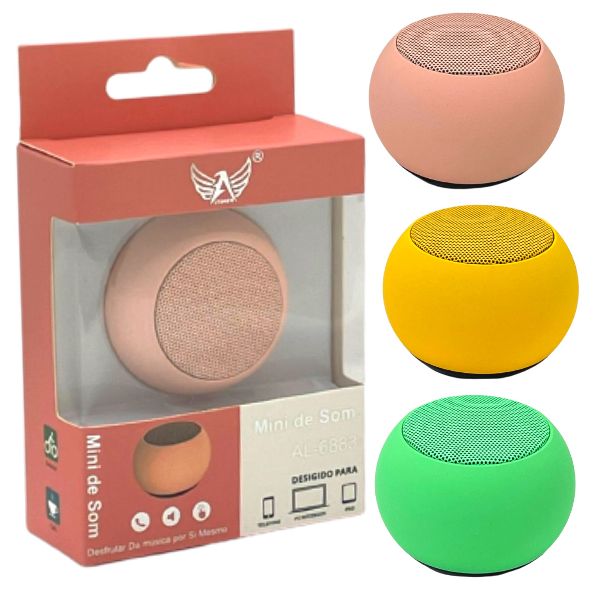 Mini Caixa de Som Bluetooth com duração de até 4 horas no volume médio.
